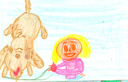 I like when Kim meets Rex the Ghost Dog. Rex then sneeks into the house and Kim doesn't know. Rex is my favorite character because he is a Ghost Dog. I really want a dog just like Kim does. The pictures in this book help to tell the story.