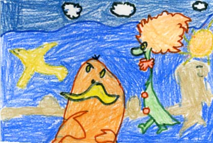 This book has so many different characters. Here are some characters; like the Bloogs, Snuvs, Jiboos, and the Zong. This book takes place everywhere your imagination can take you.In the beginning, it starts out with a bunch of rhymes. Then they introduce the characters and show us what they look like. Then it comes to my favorite part where the yellow Snuvs in gloves are. They are wearing different colored gloves, and the Snuvs are big and small. At the end, they teach you a very important lesson. It tells you that you can think up anything if only you try.